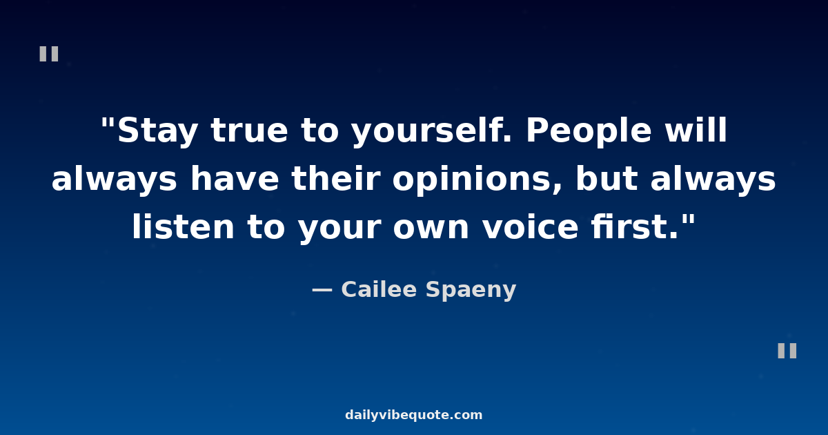 "Stay true to yourself. People will always have their opinions, but always listen to your own voice first."