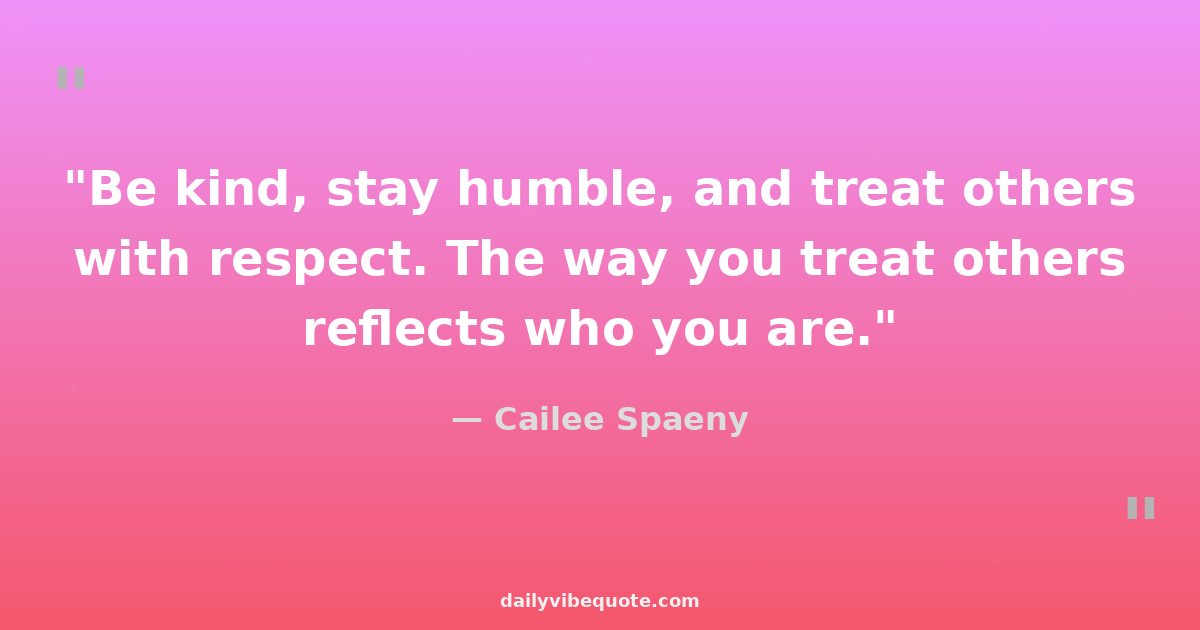 "Be kind, stay humble, and treat others with respect. The way you treat others reflects who you are."