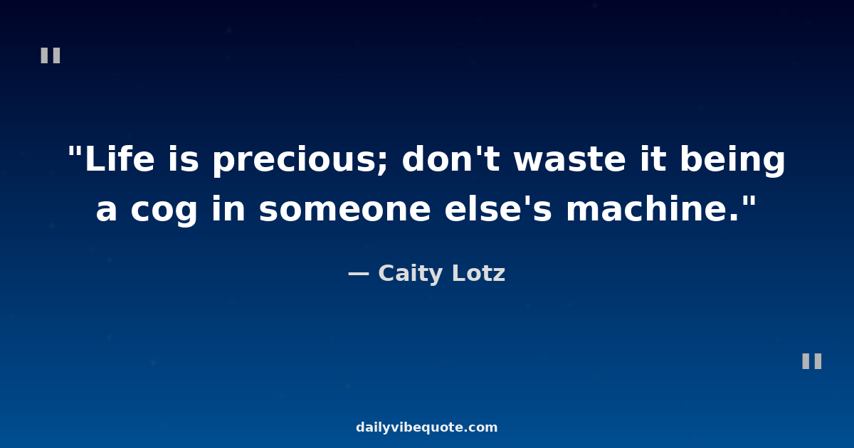 "Life is precious; don't waste it being a cog in someone else's machine."