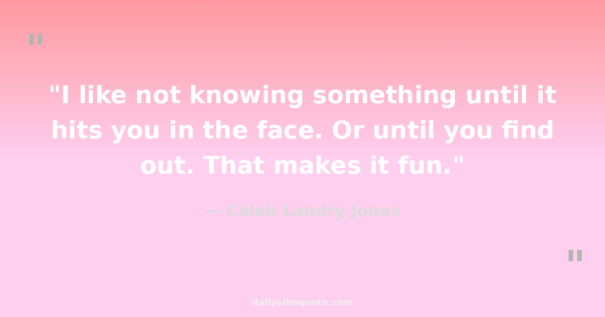 "I like not knowing something until it hits you in the face. Or until you find out. That makes it fun."