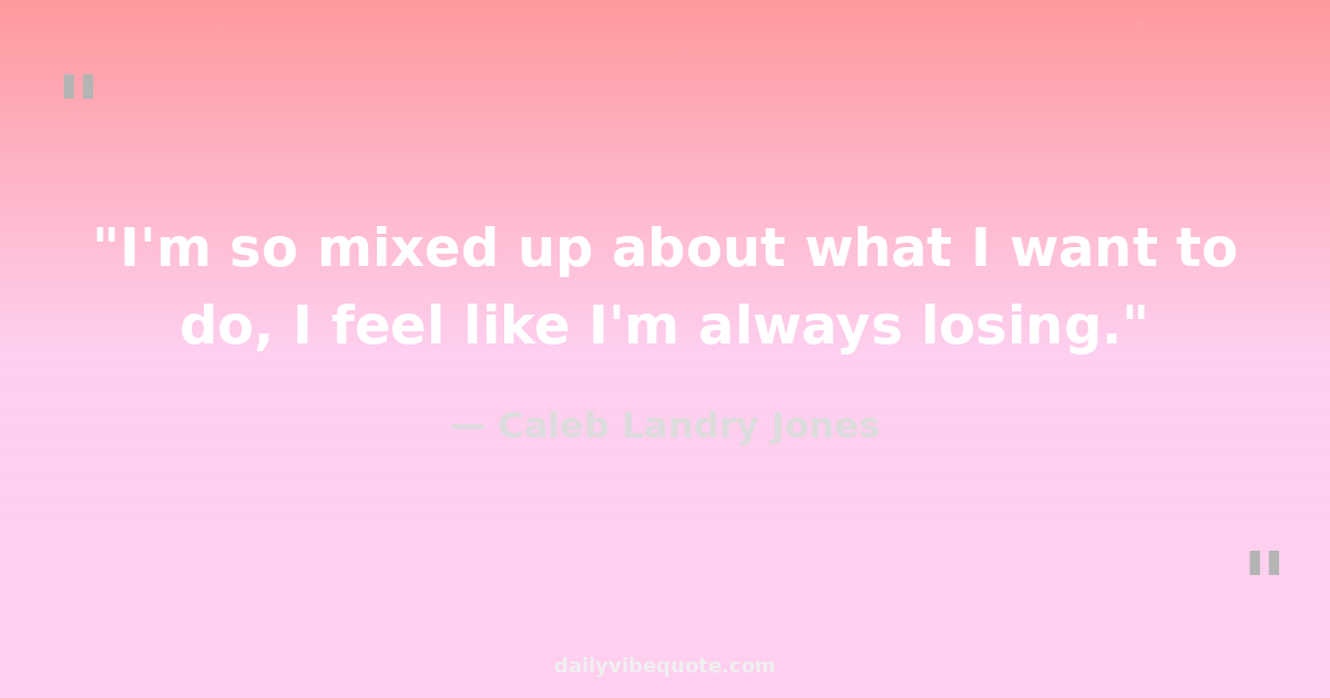 "I'm so mixed up about what I want to do, I feel like I'm always losing."