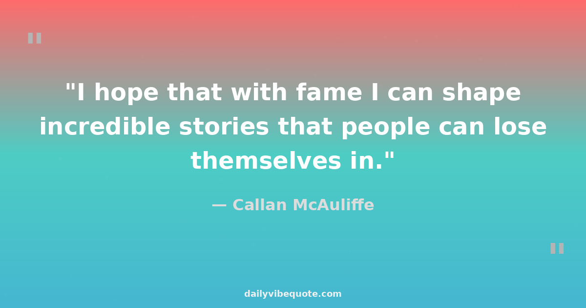 "I hope that with fame I can shape incredible stories that people can lose themselves in."
