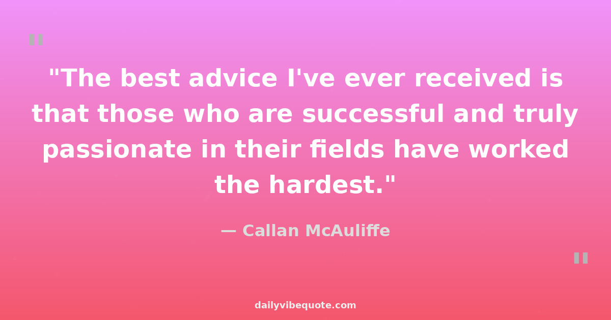 "The best advice I've ever received is that those who are successful and truly passionate in their fields have worked the hardest."