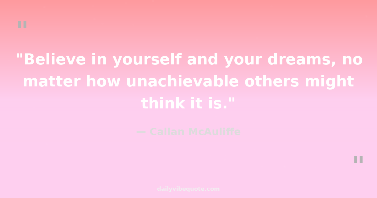 "Believe in yourself and your dreams, no matter how unachievable others might think it is."