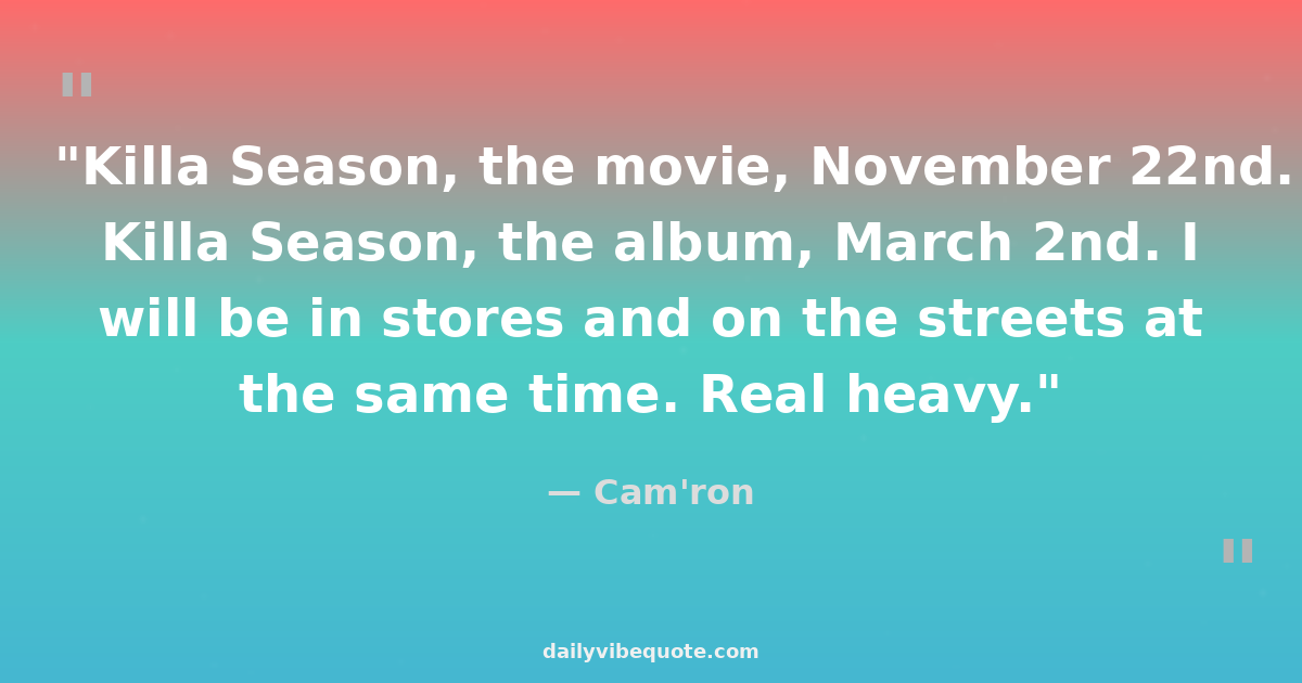"Killa Season, the movie, November 22nd. Killa Season, the album, March 2nd. I will be in stores and on the streets at the same time. Real heavy."