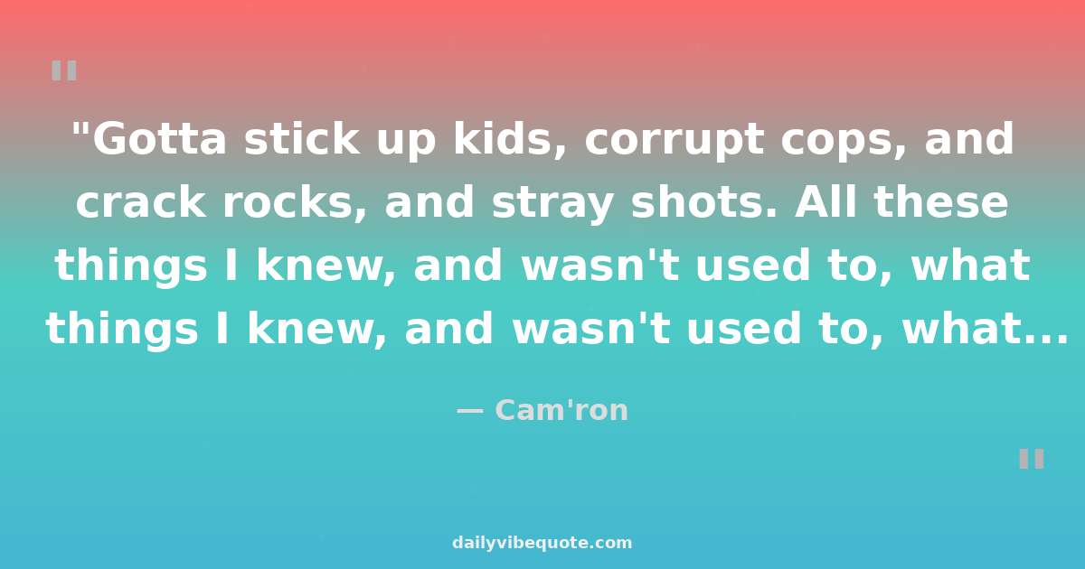 "Gotta stick up kids, corrupt cops, and crack rocks, and stray shots. All these things I knew, and wasn't used to, what was a gun to you, was like a punter to me."