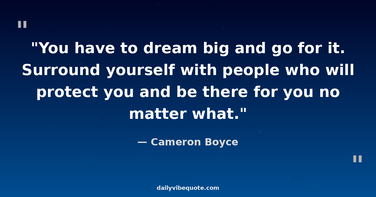 "You have to dream big and go for it. Surround yourself with people who will protect you and be there for you no matter what."