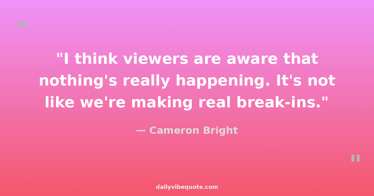 "I think viewers are aware that nothing's really happening. It's not like we're making real break-ins."