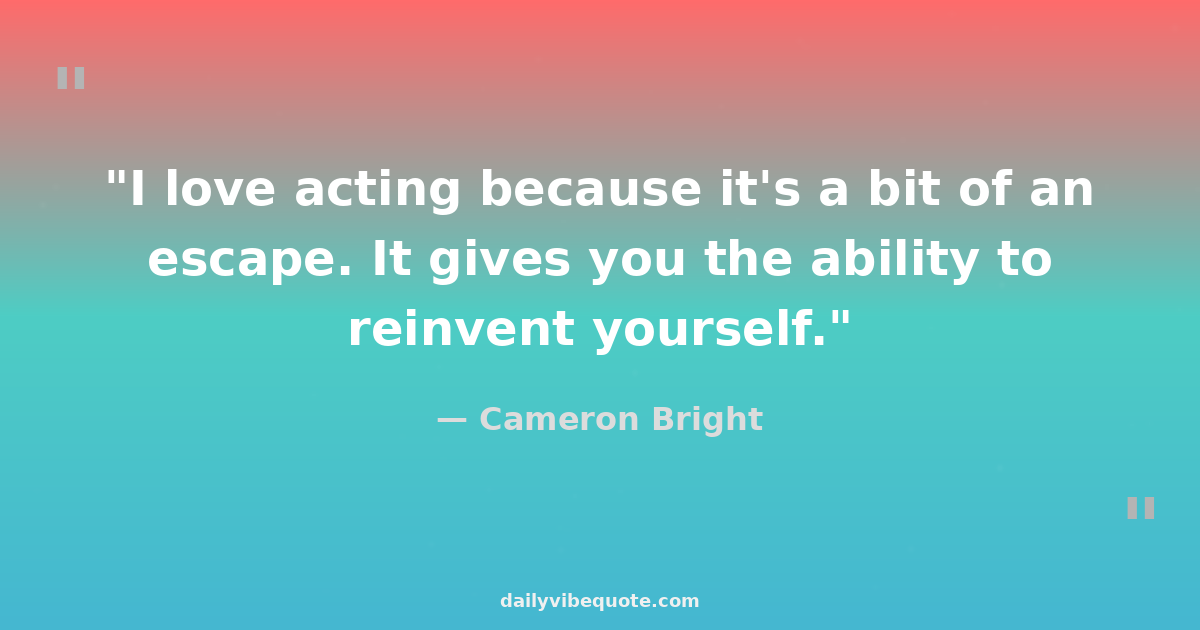 "I love acting because it's a bit of an escape. It gives you the ability to reinvent yourself."