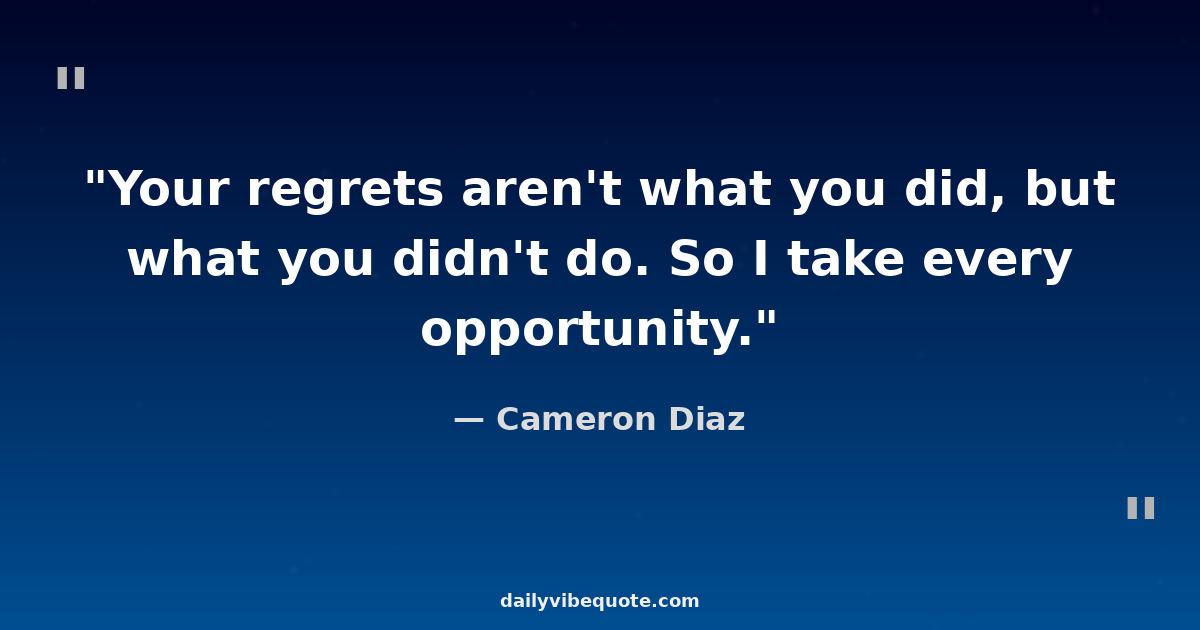 "Your regrets aren't what you did, but what you didn't do. So I take every opportunity."