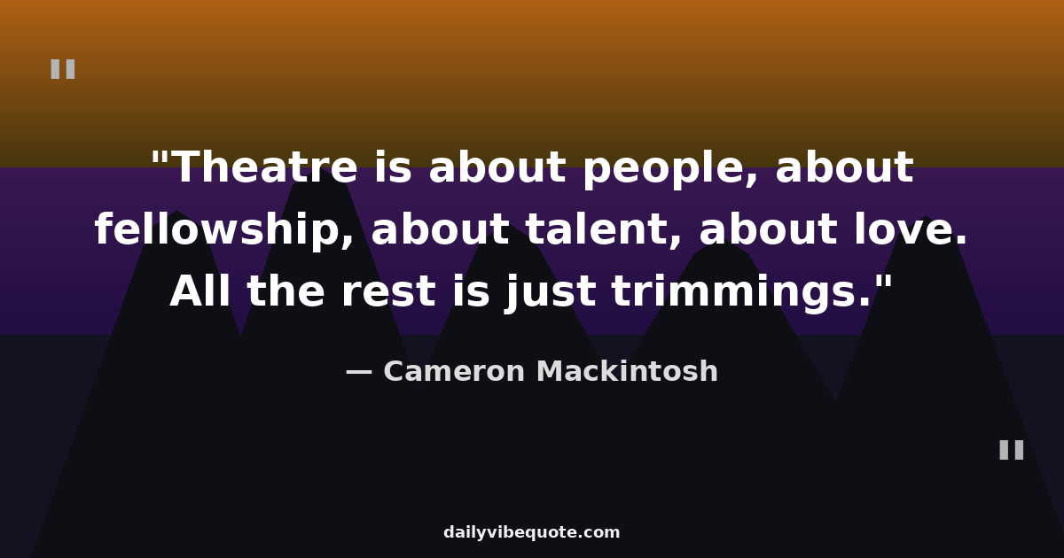 "Theatre is about people, about fellowship, about talent, about love. All the rest is just trimmings."