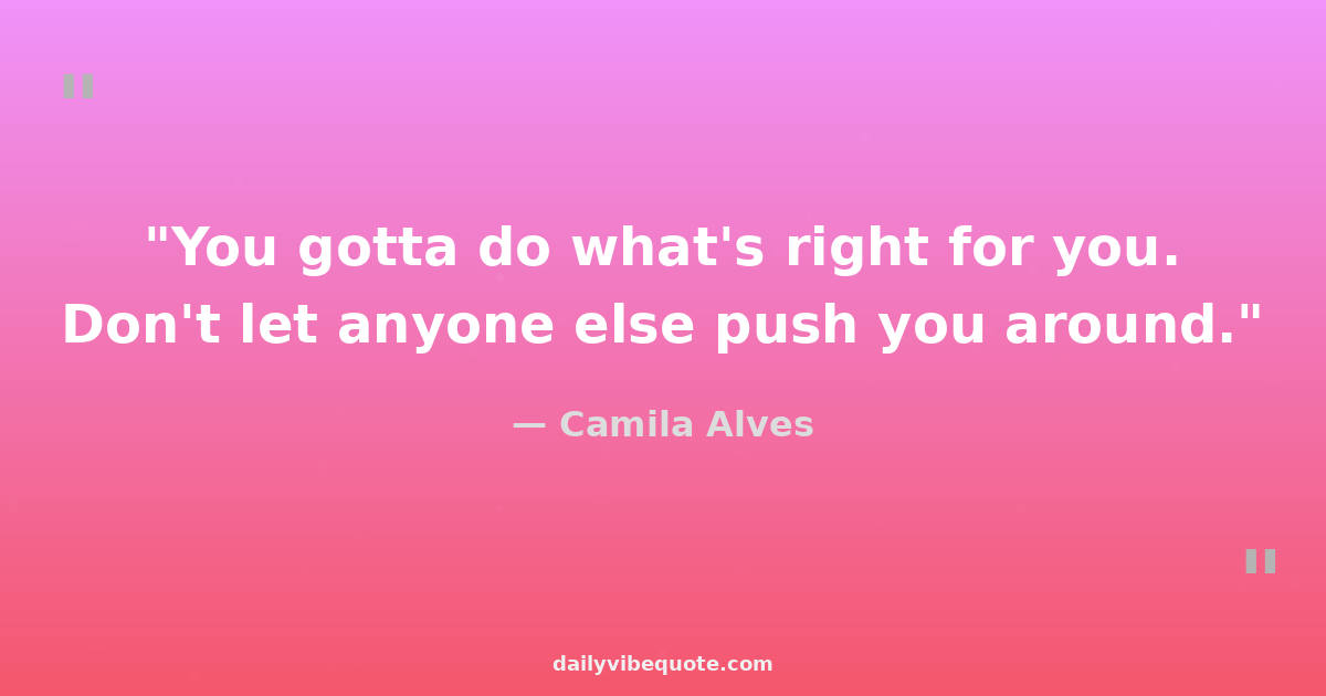 "You gotta do what's right for you. Don't let anyone else push you around."