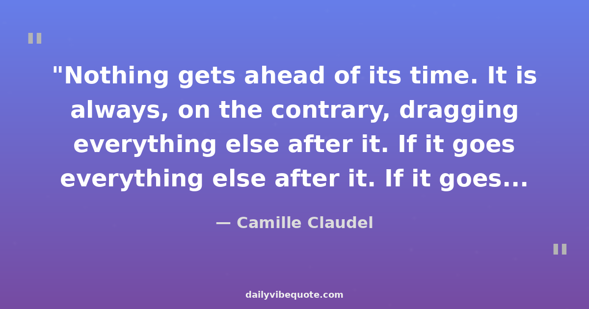 "Nothing gets ahead of its time. It is always, on the contrary, dragging everything else after it. If it goes before, that is simply because it is stronger."