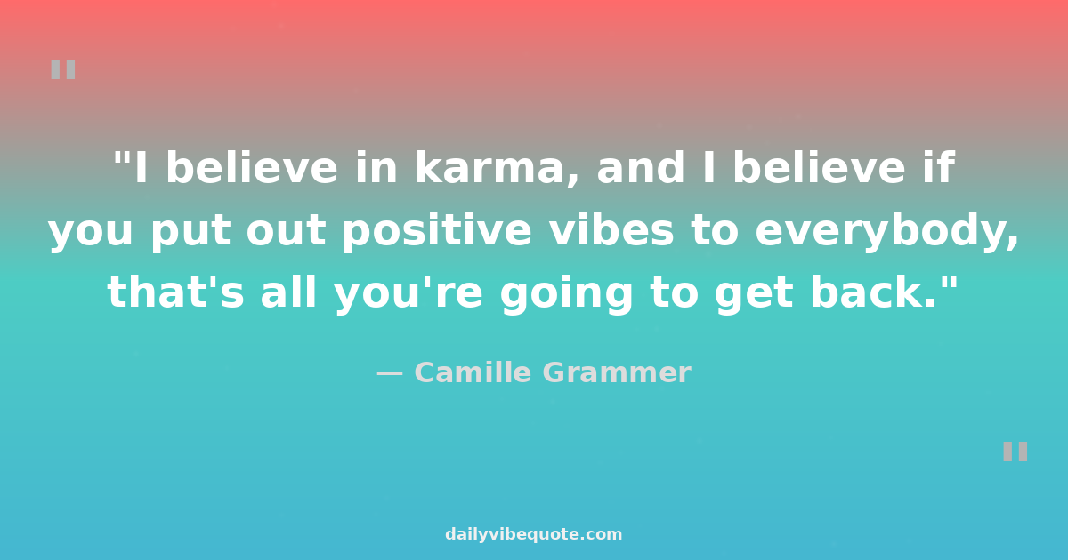 "I believe in karma, and I believe if you put out positive vibes to everybody, that's all you're going to get back."