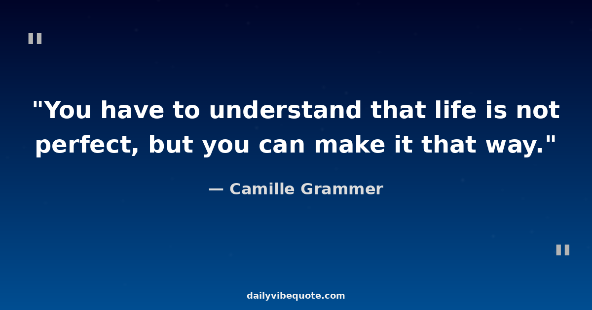 "You have to understand that life is not perfect, but you can make it that way."