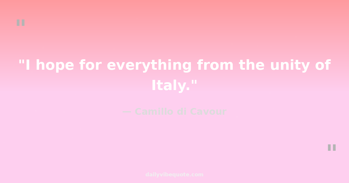 "I hope for everything from the unity of Italy."