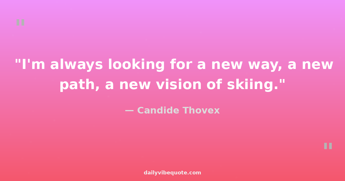 "I'm always looking for a new way, a new path, a new vision of skiing."
