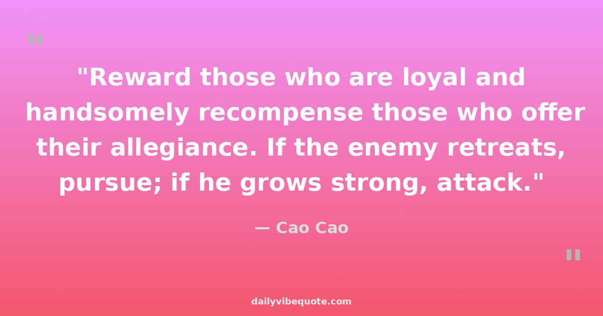 "Reward those who are loyal and handsomely recompense those who offer their allegiance. If the enemy retreats, pursue; if he grows strong, attack."