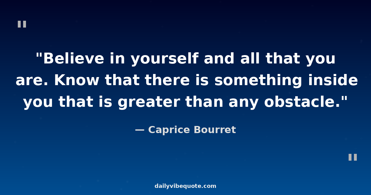 "Believe in yourself and all that you are. Know that there is something inside you that is greater than any obstacle."