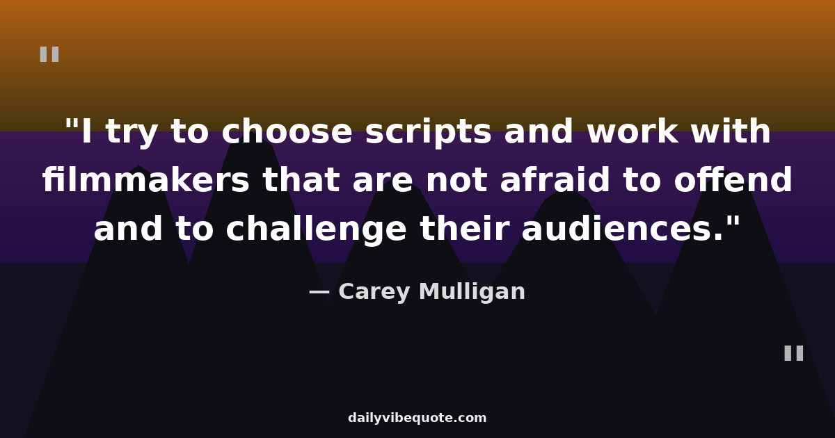 "I try to choose scripts and work with filmmakers that are not afraid to offend and to challenge their audiences."