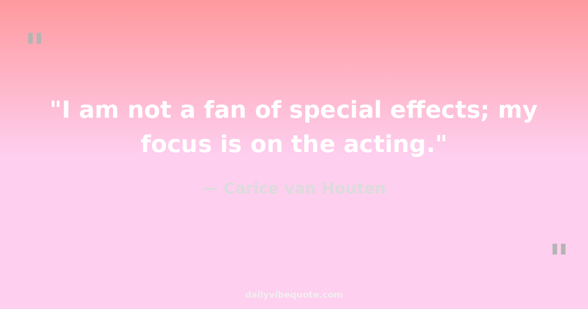 "I am not a fan of special effects; my focus is on the acting."