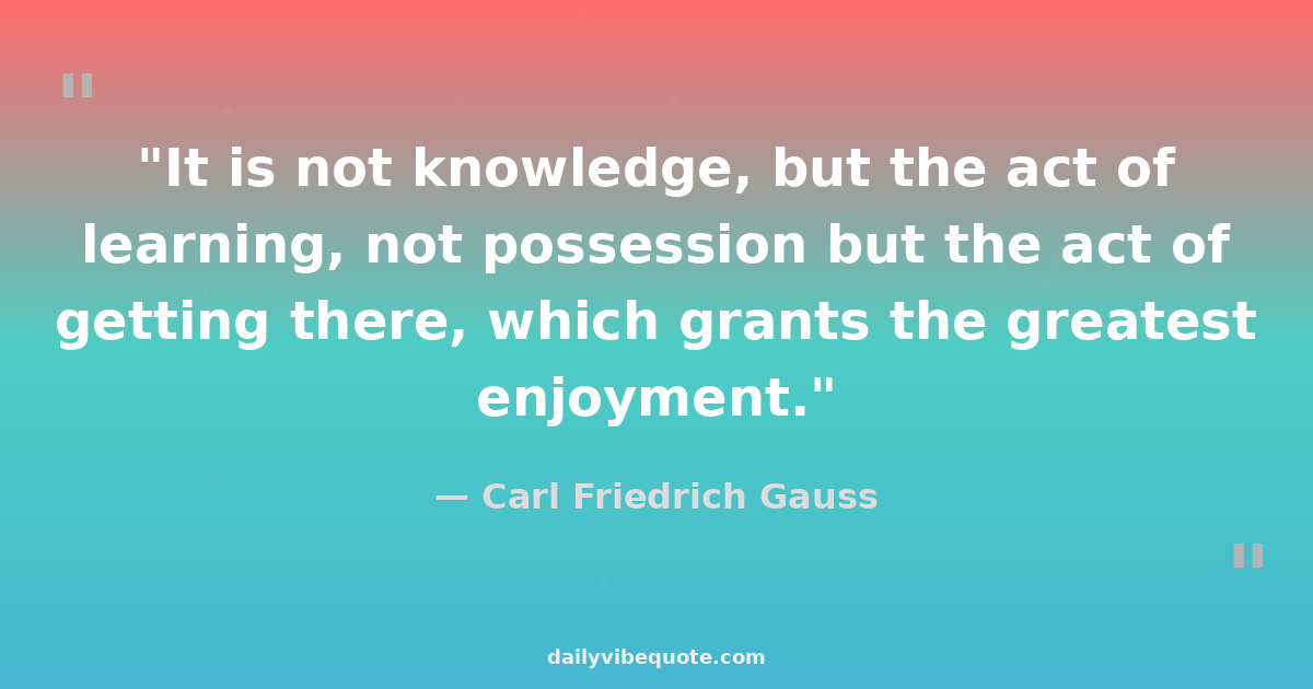 "It is not knowledge, but the act of learning, not possession but the act of getting there, which grants the greatest enjoyment."