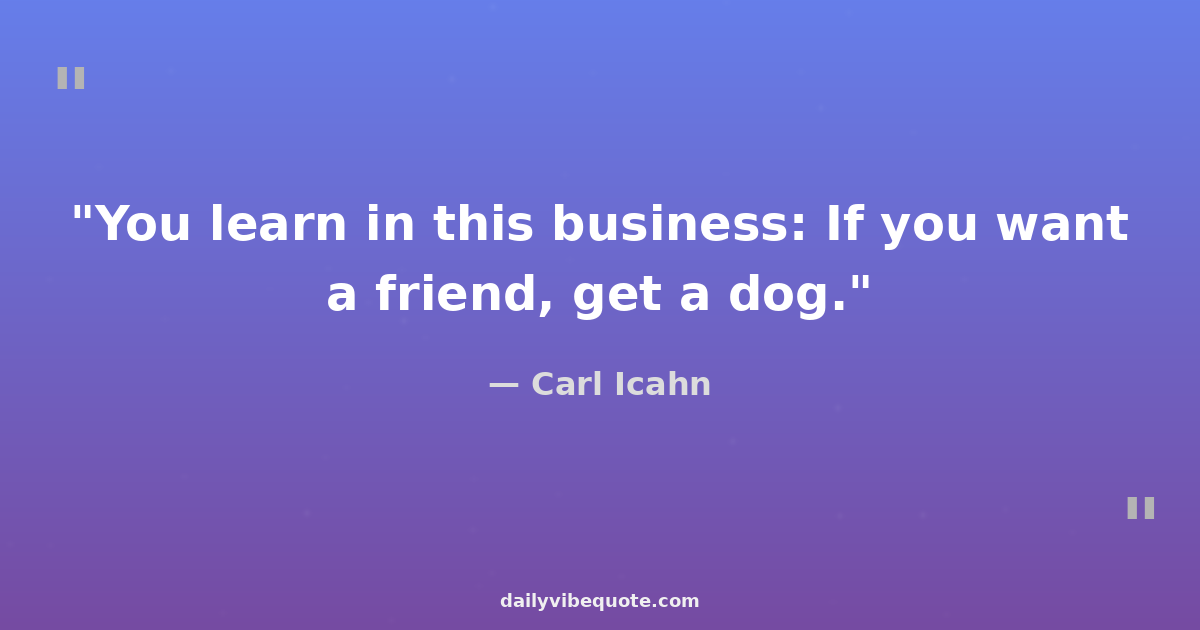 "You learn in this business: If you want a friend, get a dog."