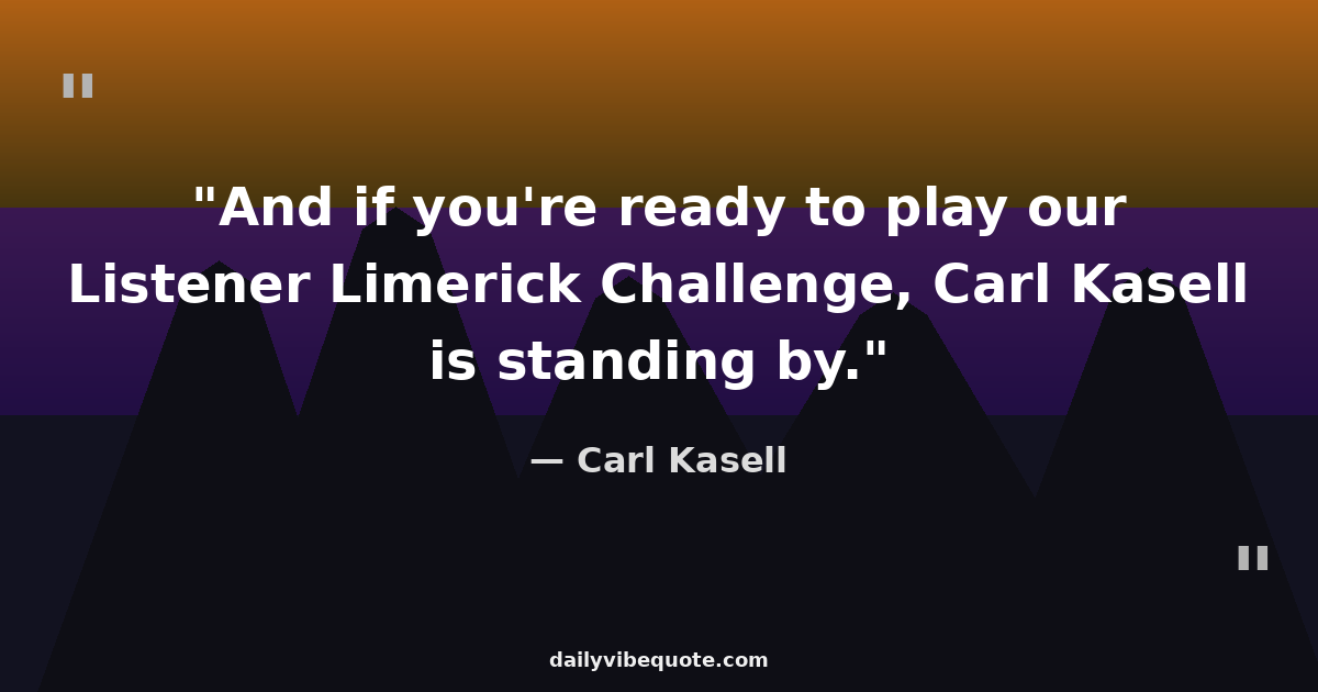 "And if you're ready to play our Listener Limerick Challenge, Carl Kasell is standing by."