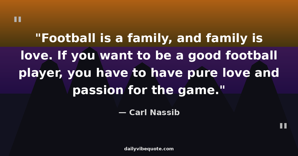 "Football is a family, and family is love. If you want to be a good football player, you have to have pure love and passion for the game."