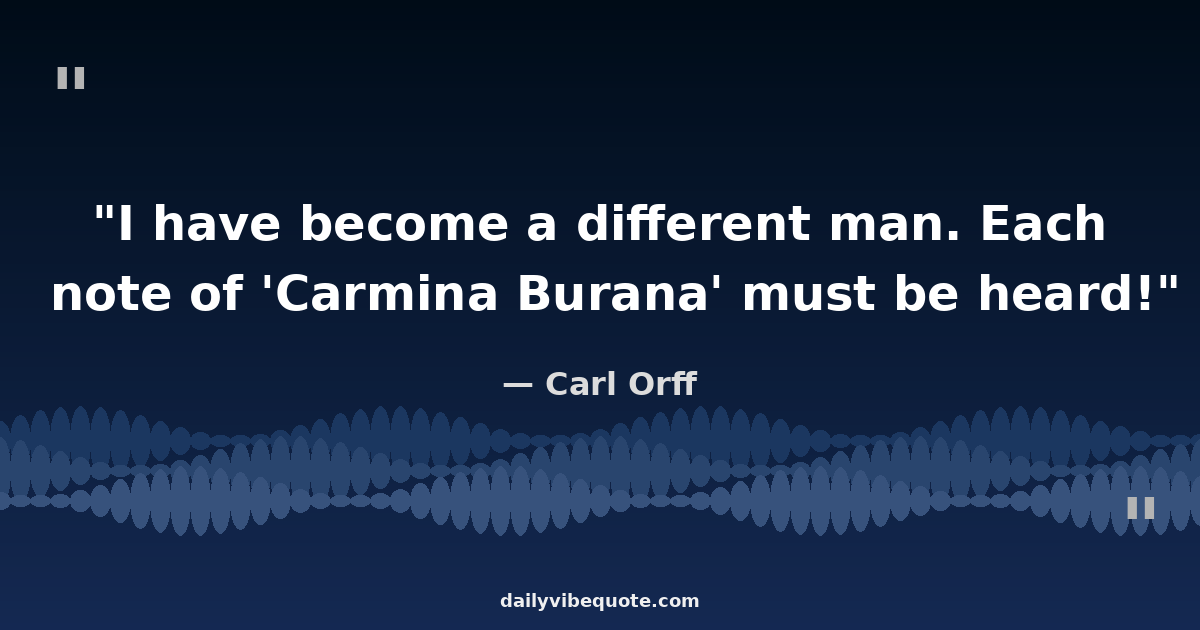 "I have become a different man. Each note of 'Carmina Burana' must be heard!"