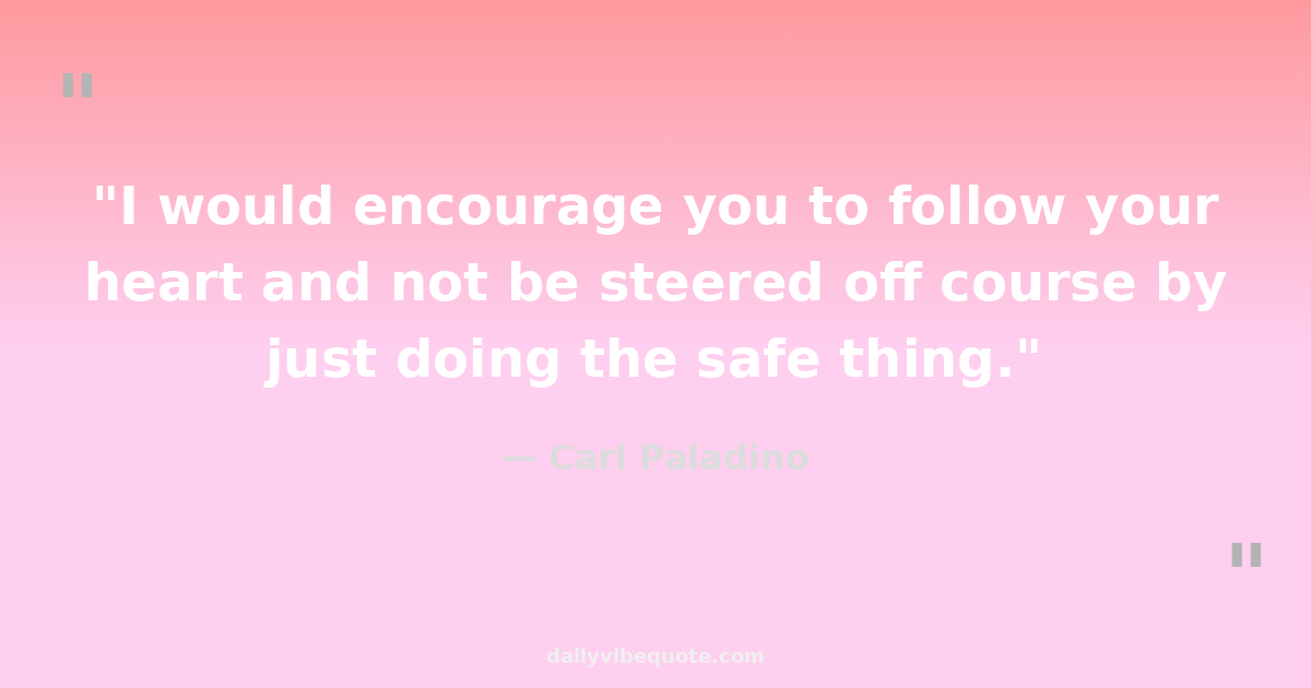 "I would encourage you to follow your heart and not be steered off course by just doing the safe thing."