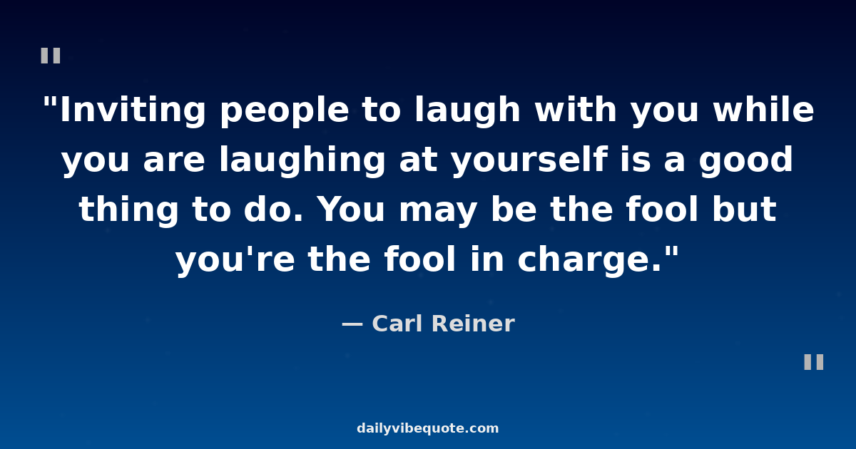 "Inviting people to laugh with you while you are laughing at yourself is a good thing to do. You may be the fool but you're the fool in charge."