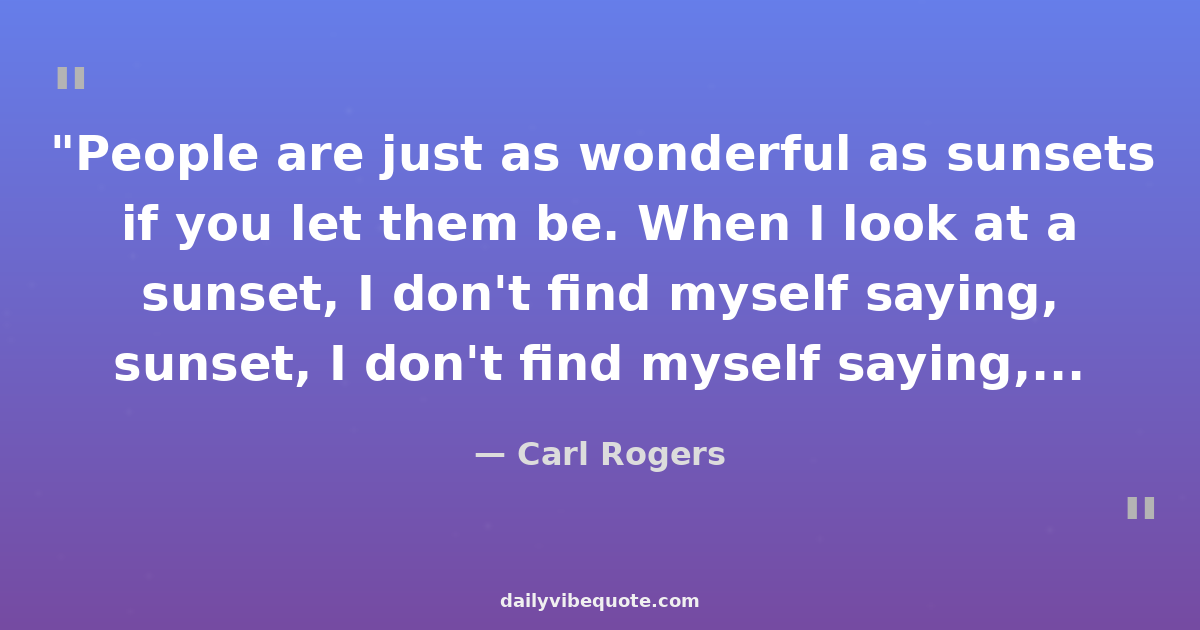 "People are just as wonderful as sunsets if you let them be. When I look at a sunset, I don't find myself saying, 'Soften the orange a bit on the right hand corner.' I don't try to control a sunset. I watch with awe as it unfolds."