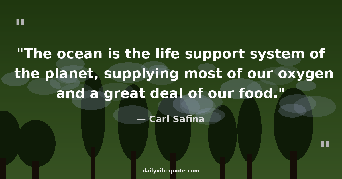 "The ocean is the life support system of the planet, supplying most of our oxygen and a great deal of our food."