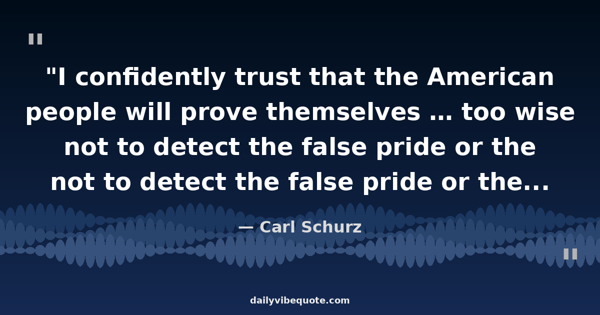 "I confidently trust that the American people will prove themselves … too wise not to detect the false pride or the dangerous ambitions or the selfish schemes which so often hide themselves under that deceptive cry of mock patriotism: 'Our country, right or wrong!' They will not fail to recognize that our dignity, our free institutions, and the peace and welfare of this and coming generations of Americans will be secure only as we cling to the watchword of true patriotism: 'Our country—when right to be kept right; when wrong to be put right.'"
