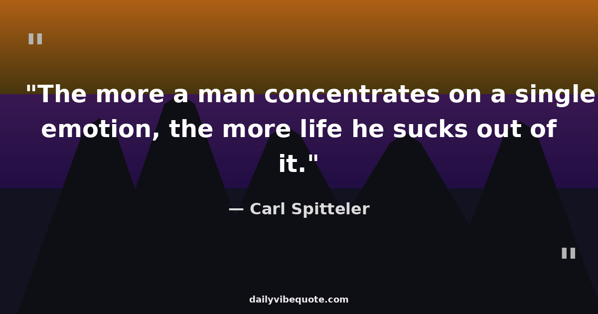 "The more a man concentrates on a single emotion, the more life he sucks out of it."