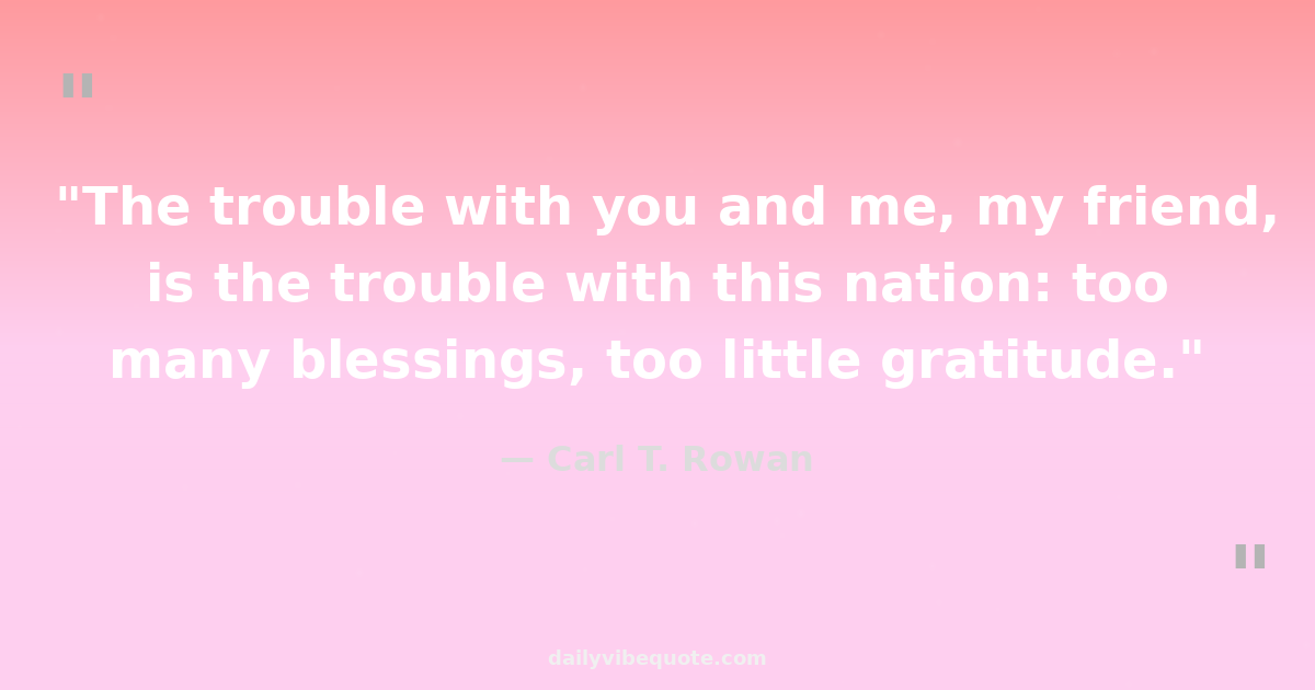 "The trouble with you and me, my friend, is the trouble with this nation: too many blessings, too little gratitude."