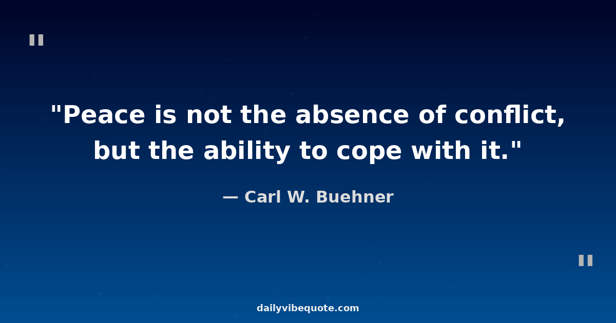 "Peace is not the absence of conflict, but the ability to cope with it."