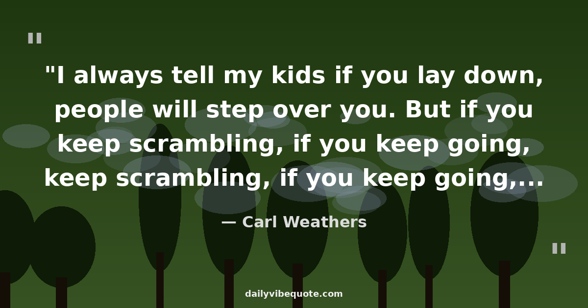 "I always tell my kids if you lay down, people will step over you. But if you keep scrambling, if you keep going, someone will always, always give you a hand. Always. But you gotta keep dancing, you gotta keep your feet moving."