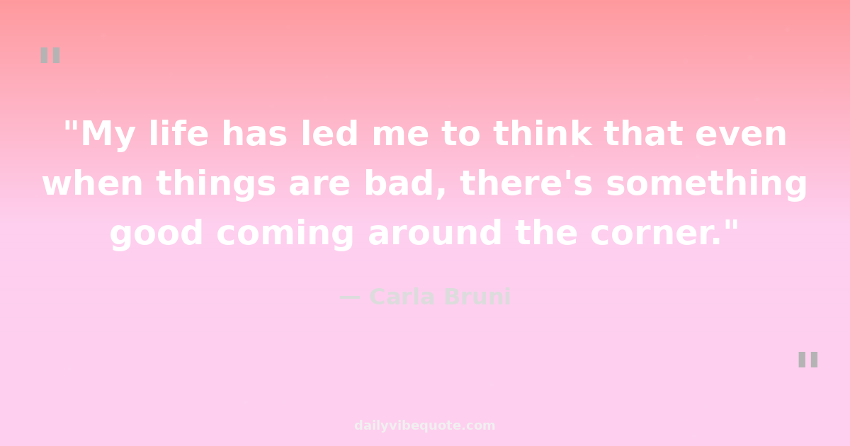 "My life has led me to think that even when things are bad, there's something good coming around the corner."