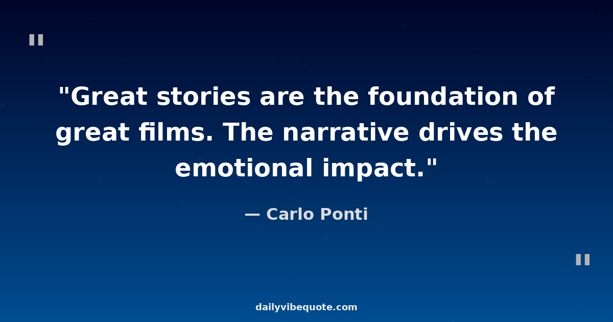 "Great stories are the foundation of great films. The narrative drives the emotional impact."