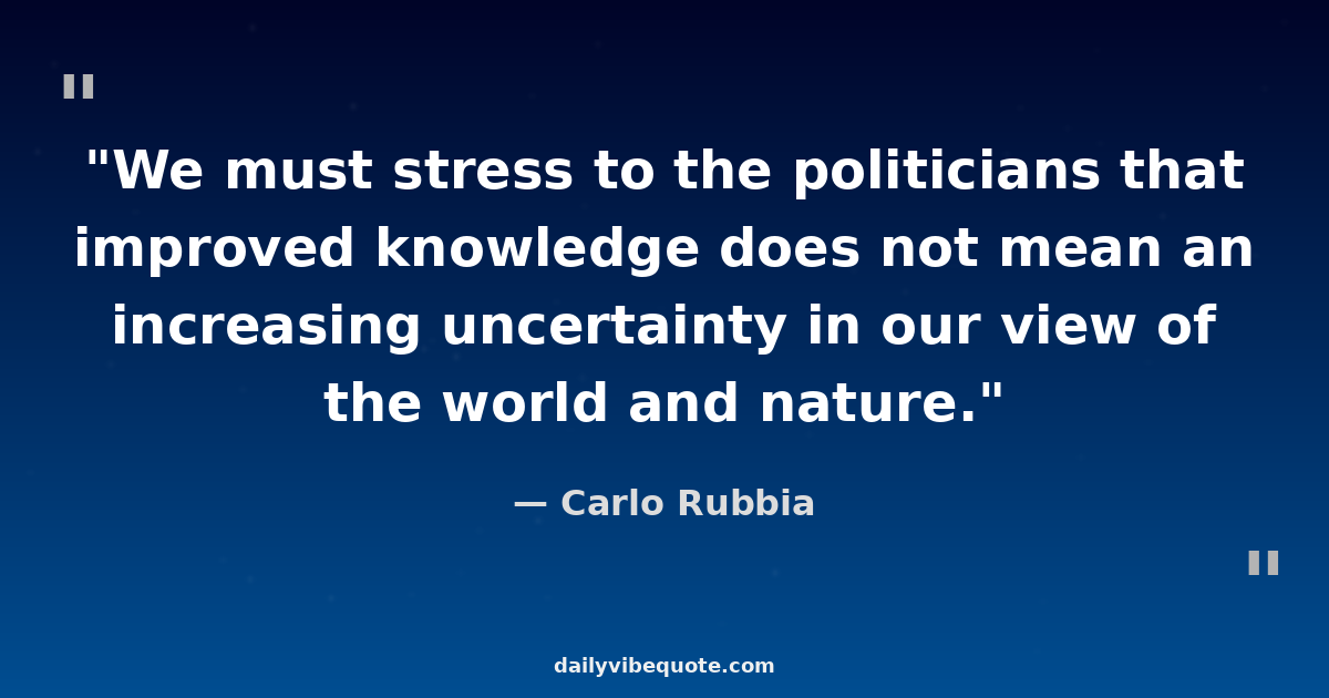 "We must stress to the politicians that improved knowledge does not mean an increasing uncertainty in our view of the world and nature."
