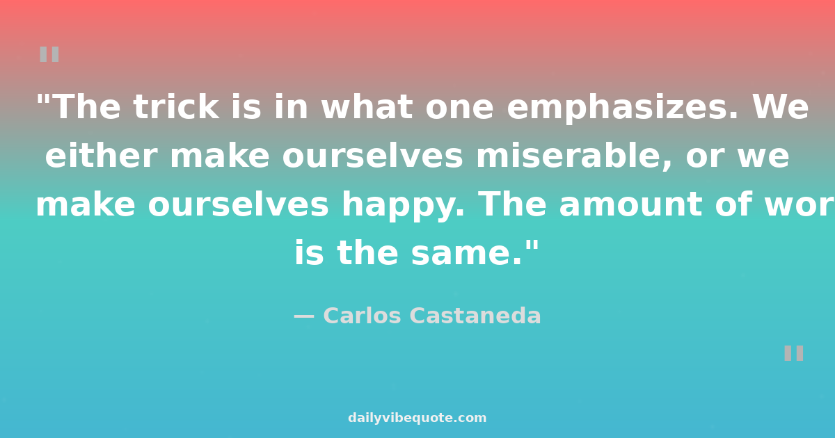 "The trick is in what one emphasizes. We either make ourselves miserable, or we make ourselves happy. The amount of work is the same."