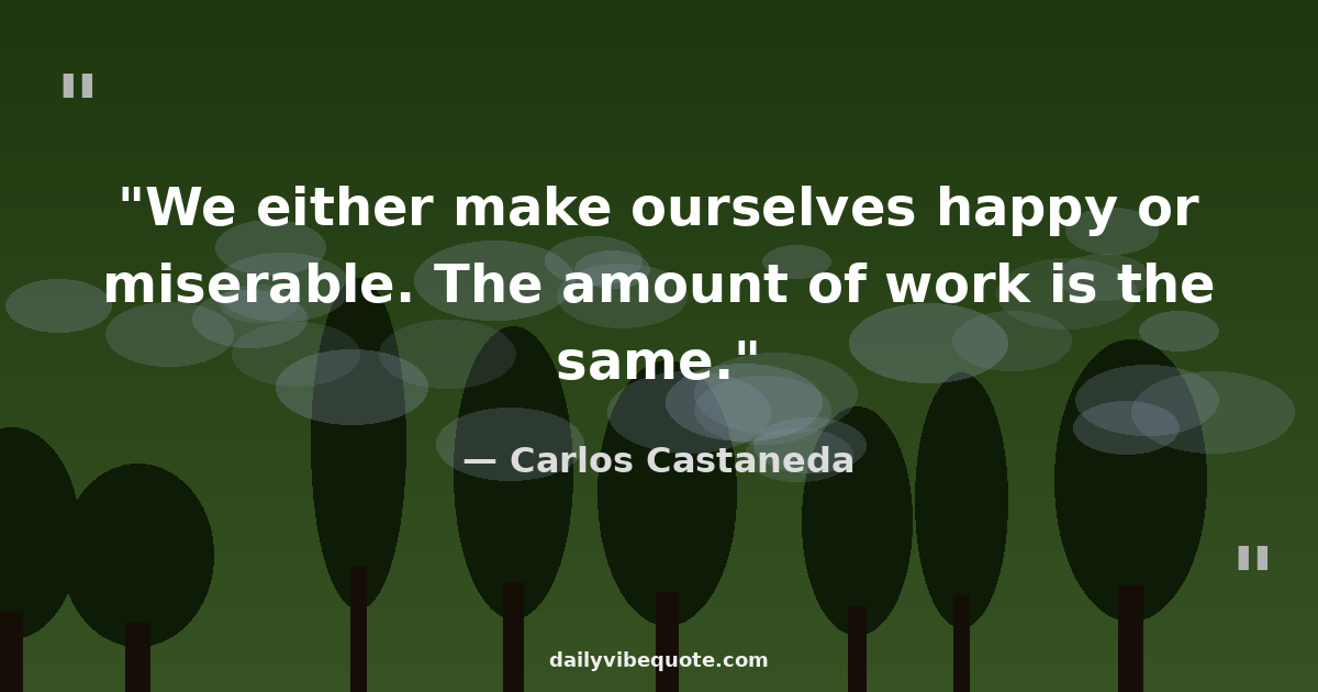 "The trick is in what one emphasizes. We either make ourselves miserable, or we make ourselves happy. The amount of work ..."