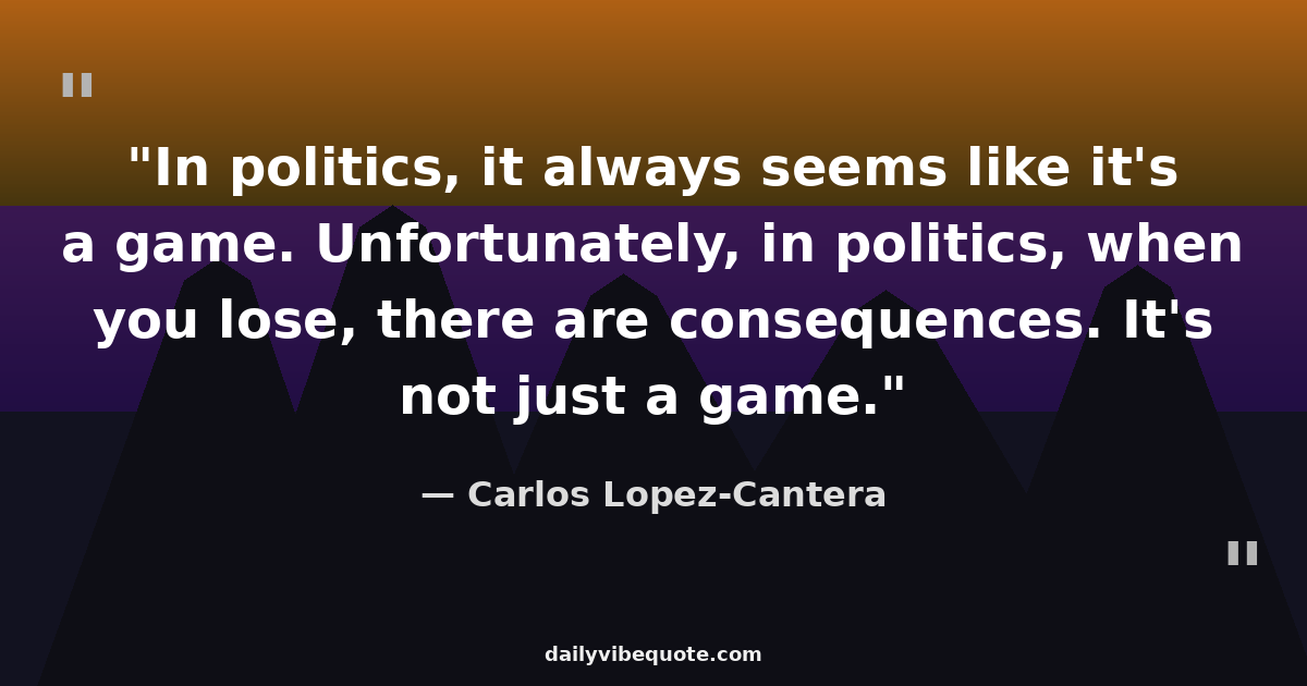 "In politics, it always seems like it's a game. Unfortunately, in politics, when you lose, there are consequences. It's not just a game."