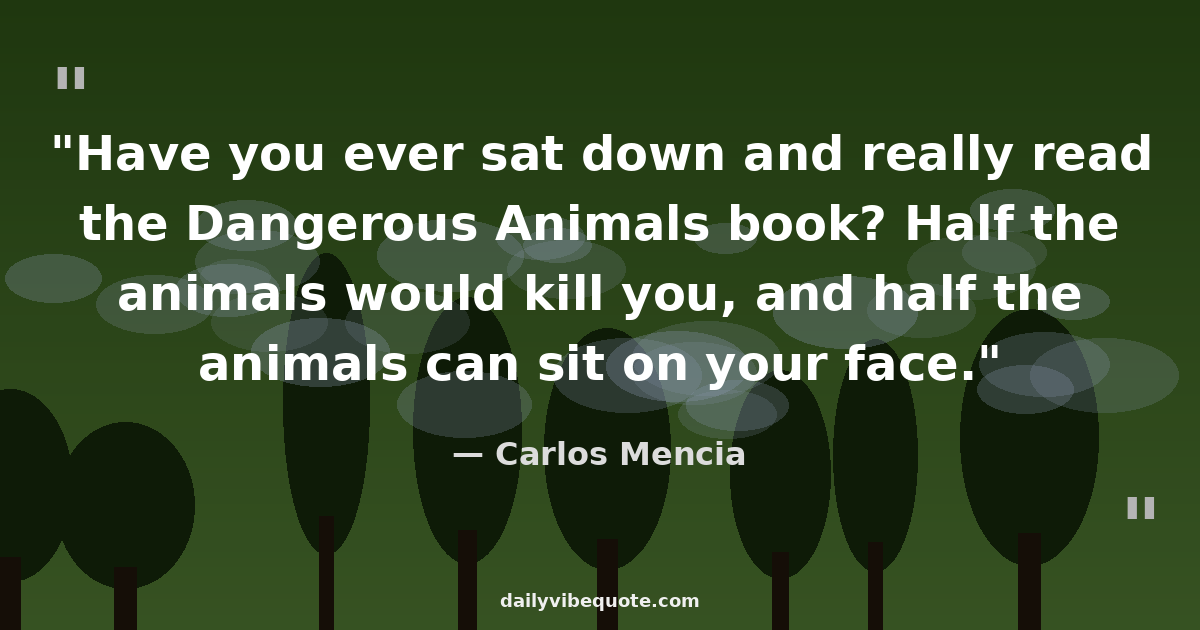 "Have you ever sat down and really read the Dangerous Animals book? Half the animals would kill you, and half the animals can sit on your face."