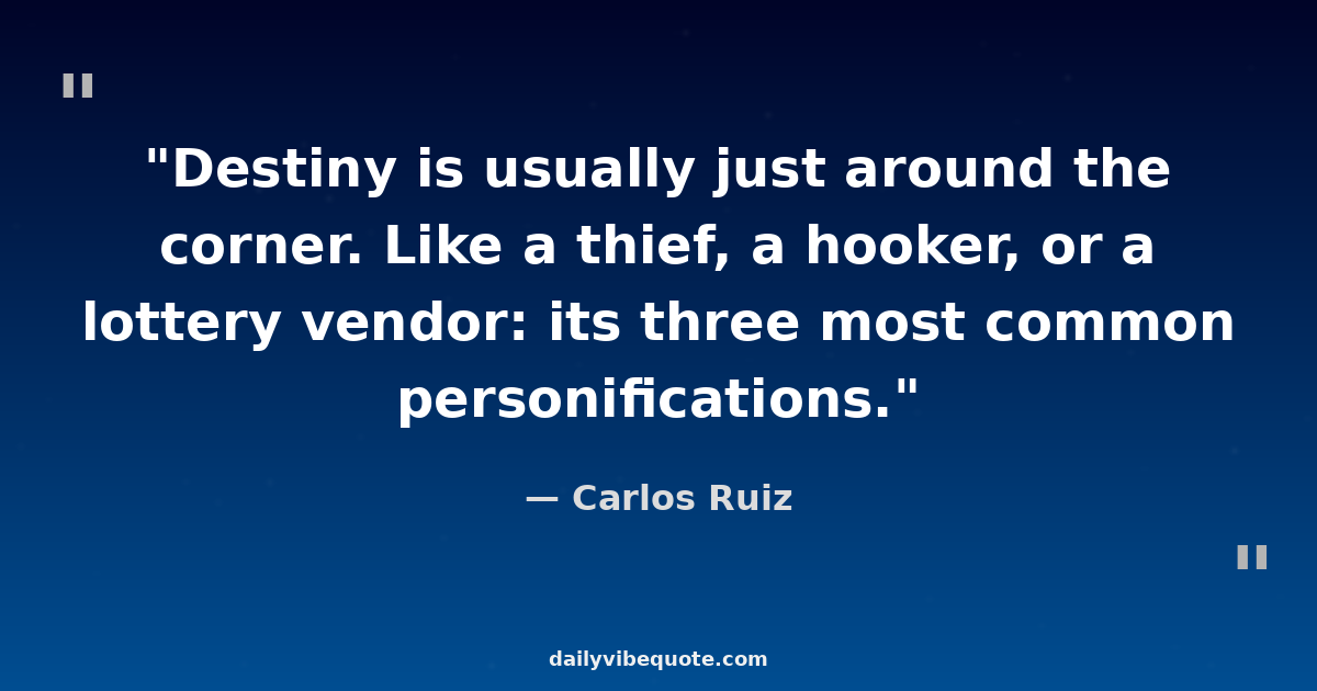"Destiny is usually just around the corner. Like a thief, a hooker, or a lottery vendor: its three most common personifications."