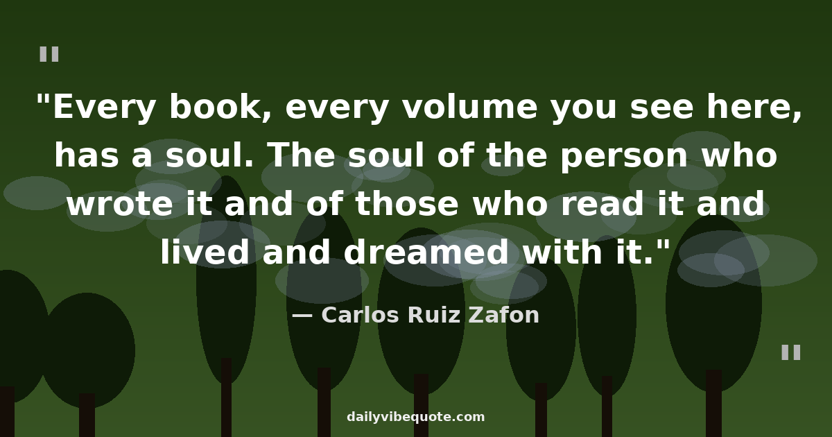 "Every book, every volume you see here, has a soul. The soul of the person who wrote it and of those who read it and lived and dreamed with it."