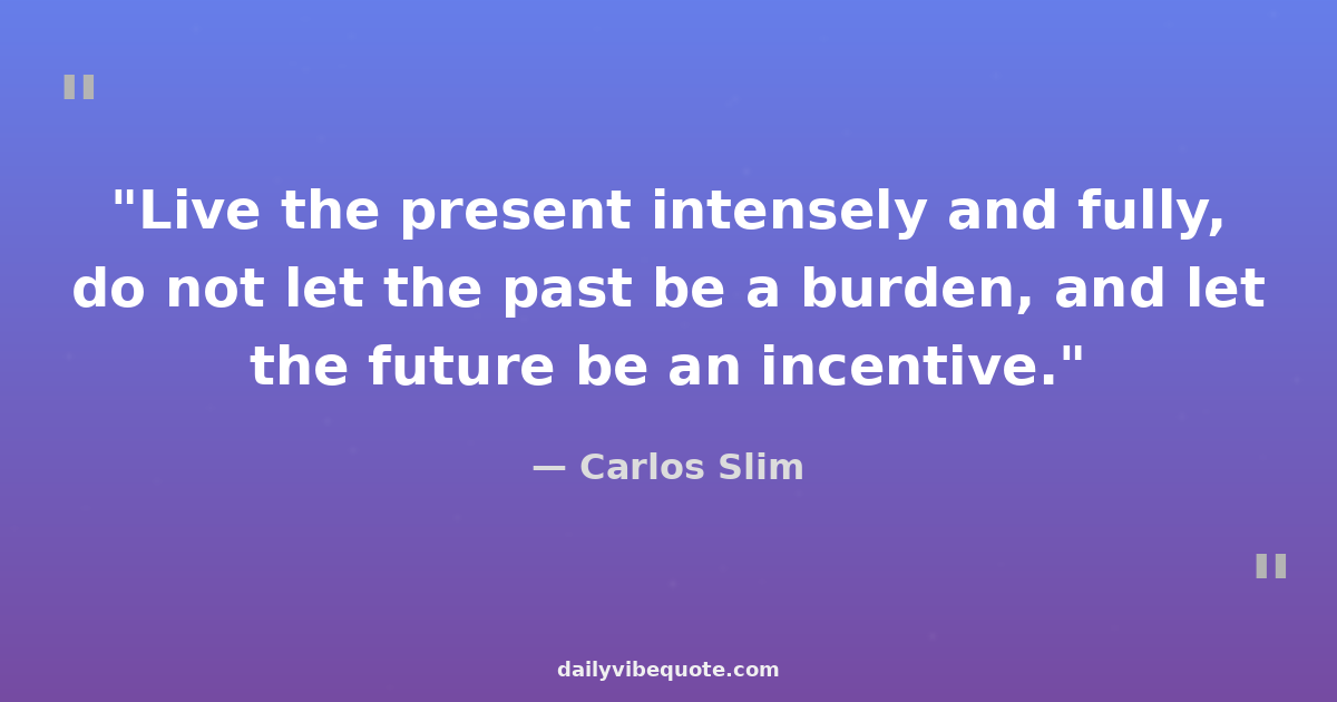 "Live the present intensely and fully, do not let the past be a burden, and let the future be an incentive."