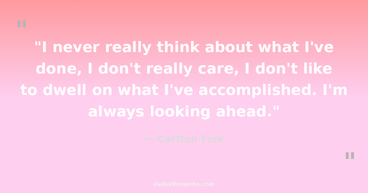 "I never really think about what I've done, I don't really care, I don't like to dwell on what I've accomplished. I'm always looking ahead."